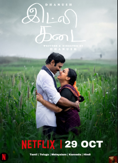 Idli Kadai will premiere on Netflix on 29 October 2025. The film stars Dhanush, Nithya Menon, Arun Vijay, Shalini Pandey, Sathyaraj, Rajkiran, and others.