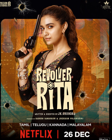 Revolver Rita will stream on Netflix on December 26, 2025. Along with Keerthy Suresh, the film features Radhika Sarathkumar, Super Subbarayan, Sunil, Ajay Ghosh, Redin Kingsley, John Vijay, Kalyan Master, Suresh Chakravarthy, and others